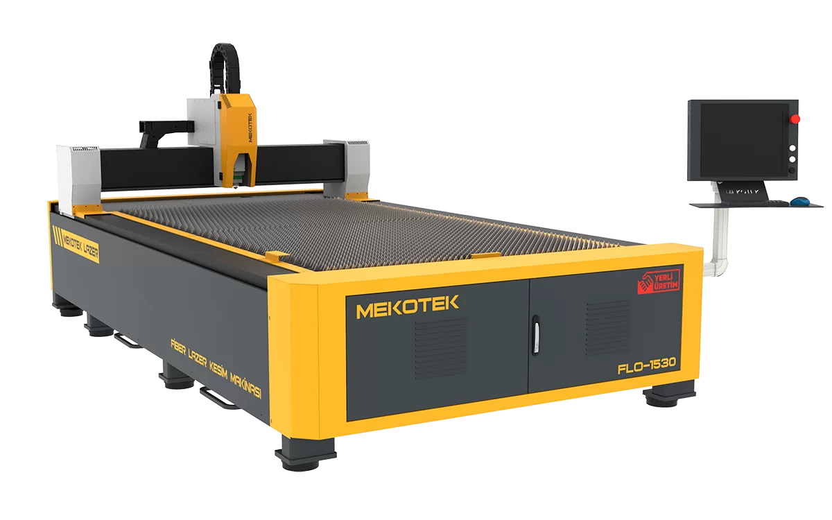 FLO 1530 model fiber lazer kesim makinesi açık tabla ve 1500×3000 mm ebatlarında kesim alanı, 2355 x 4302 x 1980 mm dış ebatları, Raycus Fiber Lazer Kaynağı, Alamn ve Japon Mekanik parçalar, Japon Smc veya Alman Festo Pnömatik sistem, İspanyol Fagor yada Uzakdoğu Cypcut, Weihong, Mpower gibi kontroller sistem, Yaskawa yada Delta servo motor sistemleri, 2600 Kg çelik hassas işlenmiş gövde.